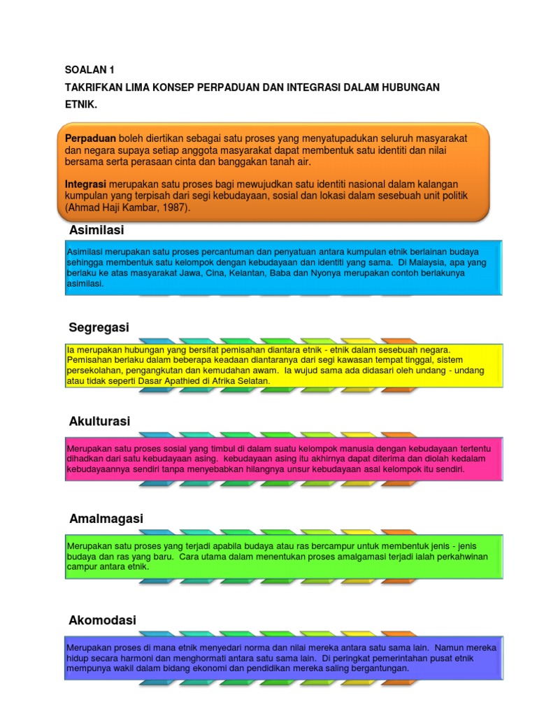 Soalan 1takrifkan Lima Konsep Perpaduan Dan Integrasi Dalam Hubunganetnik Pdf