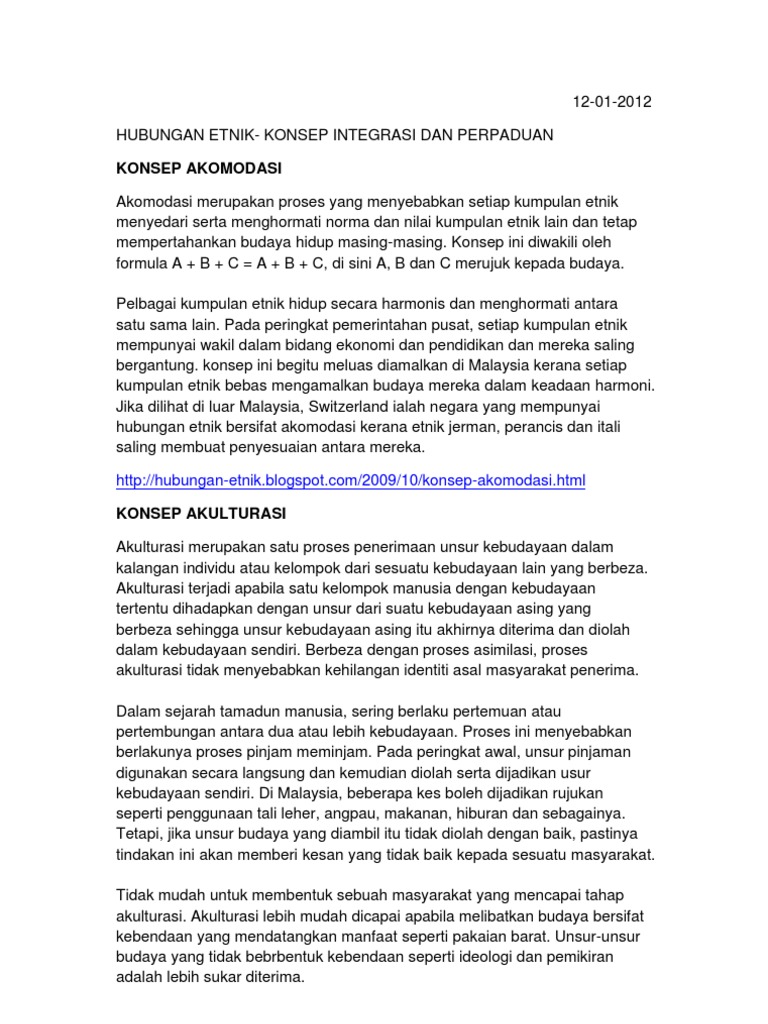 Hubungan Etnik Konsep Integrasi Dan Perpaduan Pdf