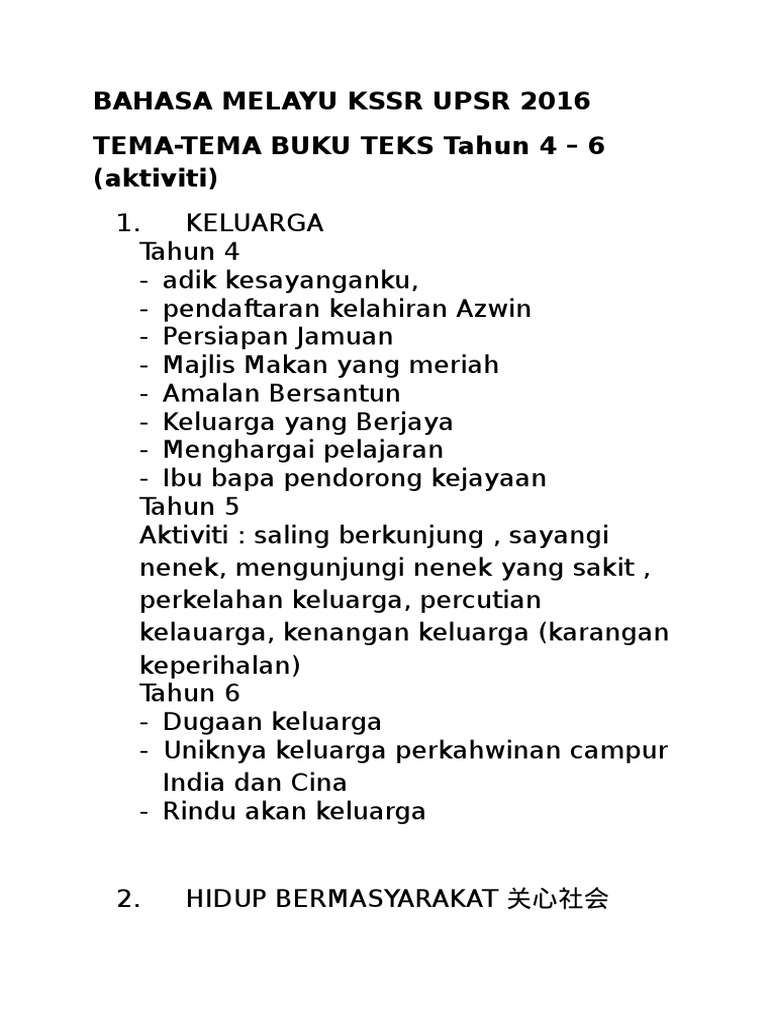 Bahasa Melayu Kssr 4 6 Upsr 2016 Tema Dan Aktiviti Pdf